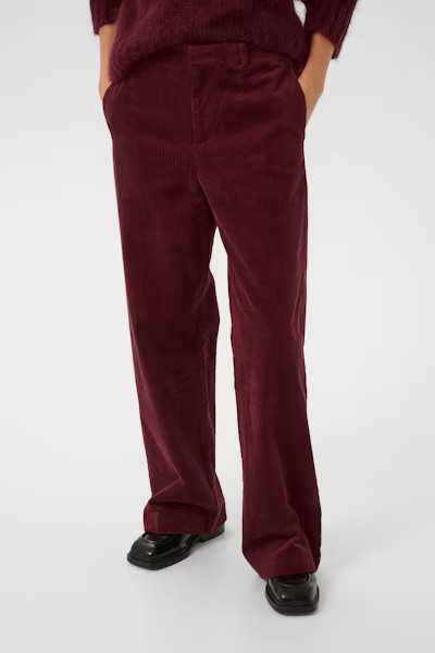 Disse buksene fra Part Two i myk kordfløyel har en rett og lett utsvingt passform som gir et elegant, men avslappet uttrykk. Med sidelommer, beltehemper og skjult lukking. Perfekt sammen med en matchende blazer eller en chunky genser.