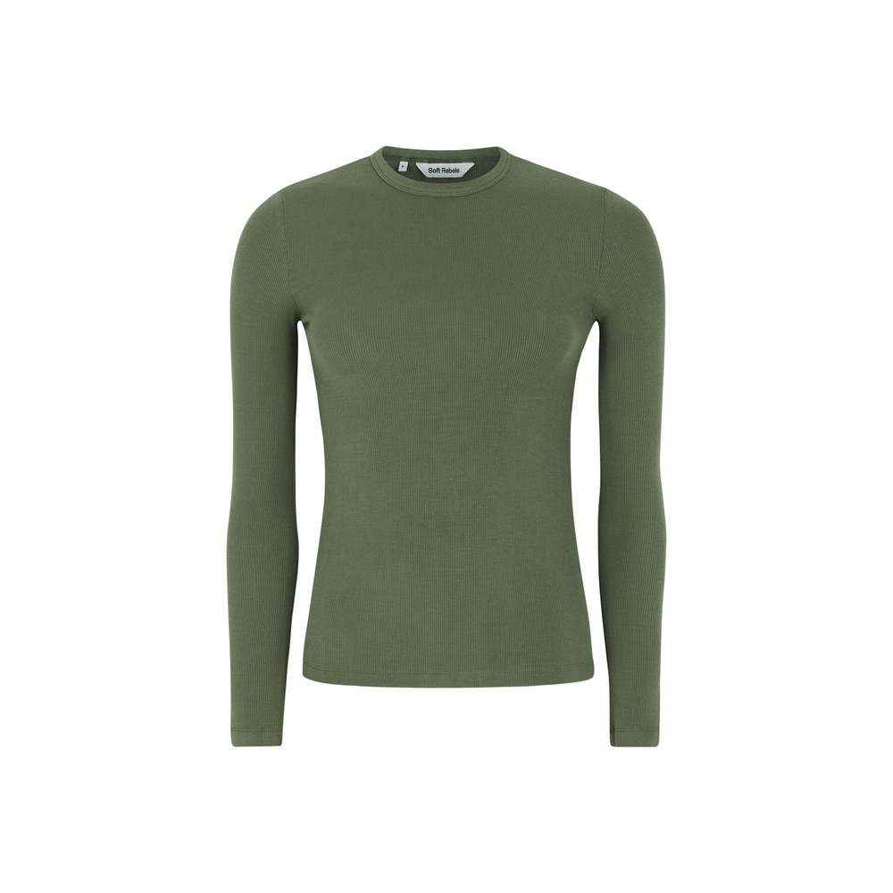 Deilig ribbestrikket basic genser/topp fra Soft Rebels . Genseren har en rund hals, og en ettersittende passform. Utrolig myk og delikat kvalitet, så deilig å ha på. Fin å ha under dressjakke, cardigan eller en genser også.