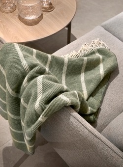 Blå/beige Rutet Pledd i Resirkulert Ull