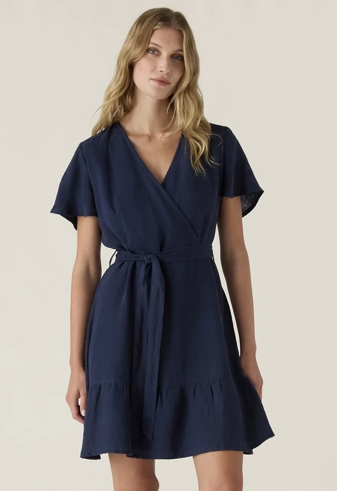 Den klassiske passformen og korte ermene gjør denne kjolen utrolig allsidig - perfekt til strandturer, hagefester eller uformelle byadventyr. Den tidløse mørkeblå fargen passer uanstrengt med sandaler til dagtid eller kan styles opp med høye hæler til kveldsanledninger.