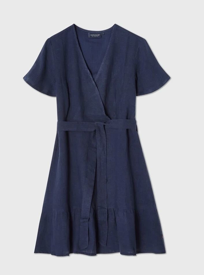 Omfavn uanstrengt sommereleganse med LEXINGTON´s lin V-hals kjole med belte. Laget av 100% premium lin, gjør dette pustende og naturlig kjølende stoffet til det perfekte valget for styling i varmt vær. Den klassiske A-linje silhuetten smigrer alle figurer, mens de nedslåtte skuldrene skaper en avslappet, moderne følelse.