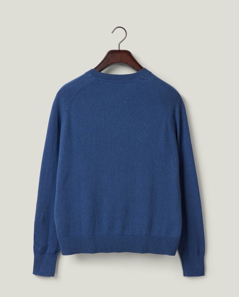 Opplev den perfekte kombinasjonen av hverdagskomfort og subtil luksus med Lexington sin kashmirblandingsgenser med raglanermer. Laget av en førsteklasses blanding av 95% bomull og 5% kashmir, gir denne fint strikkede genseren eksepsjonell mykhet mot huden samtidig som den gir akkurat riktig mengde varme for overgangssesonger. Den klassiske raglanermdesignen gir økt bevegelsesfrihet, noe som gjør den ideell for både hverdagsbruk og avslappede arbeidsdager.