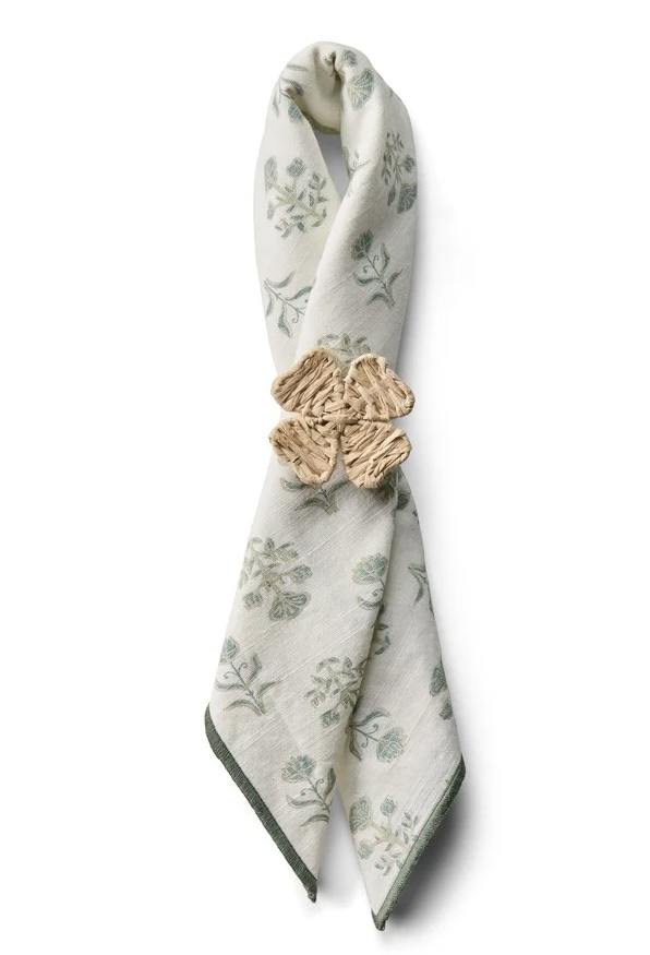 serviett i økologisk bomull m/blomstertrykk, eukalyptus