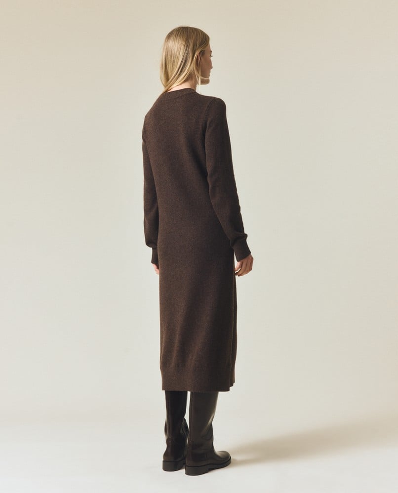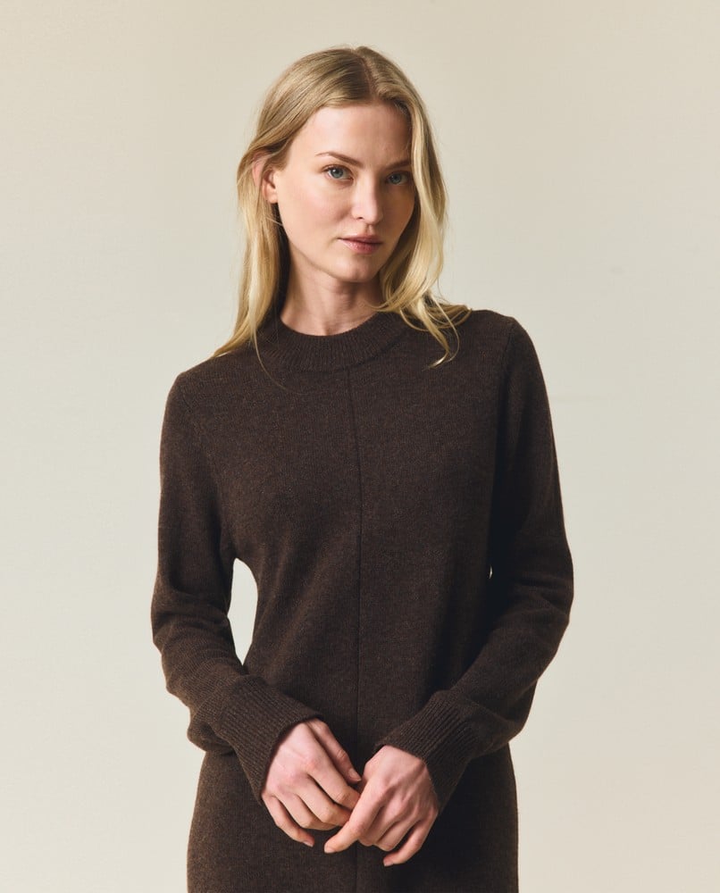 Oppgrader din hverdagsstil med Lexingtons Straight Fit Midi strikket kjole, en perfekt kombinasjon av komfort og sofistikering. Denne kjolen er laget av en førsteklasses blanding av ekstra fin merinoull, økologisk bomull og resirkulert nylon, som gir både varme og bærekraft. Den lysbeige melangefargem skaper et allsidig utgangspunkt for tilbehør, mens gjennomtenkte detaljer som drop needle-søm midt foran og subtile splitter tilfører raffinert visuell interesse. Den casual passformen faller vakkert over kroppen, og ribbelementer ved hals, ermer og nederkant gir struktur og holdbarhet. Kombiner med støvler og et statement-smykke på kjøligere dager, eller kle den ned med sneakers for et mer avslappet utseende - denne midikjolen vil raskt bli en hjørnestein i garderoben din.