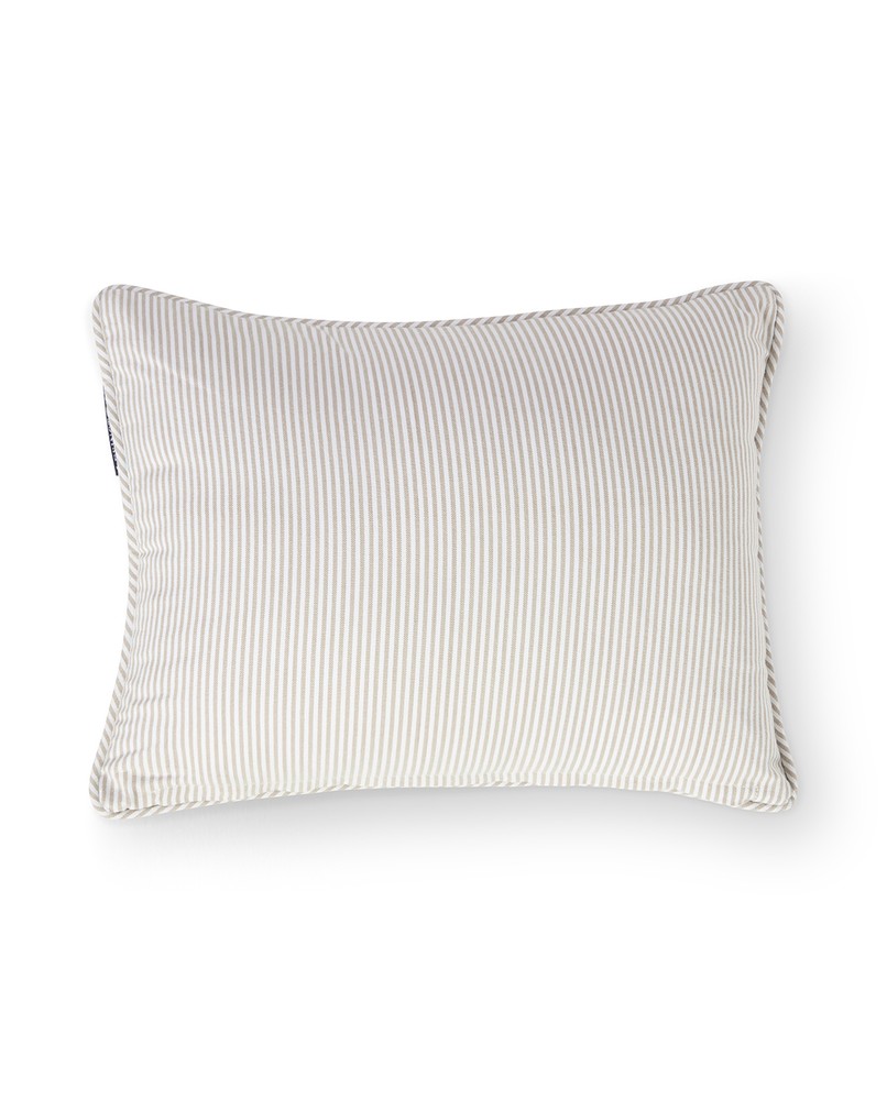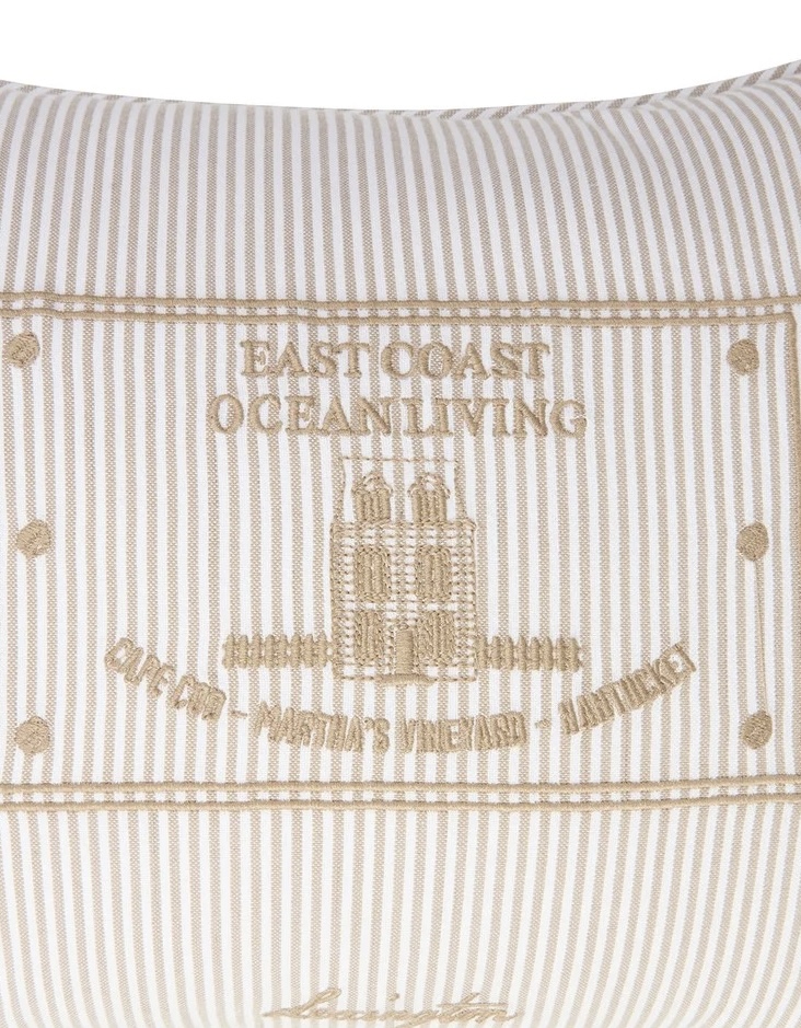 Den klassiske Lexington beige og hvite stripete pynteputen bringer tidløs eleganse til hjemmet ditt med sin myke økologiske bomull i oxfordvev og originalt garnfarget stripemønster. Den broderte logoen foran og den fine kantbånden i samme stoff tilfører raffinerte detaljer, mens den skjulte fargetilpassede glidelåsen sikrer et sømløst utseende. Produsert i en sertifisert grønn fabrikk og Oeko-tex-sertifisert, reflekterer denne puten forpliktelse til bærekraft og kvalitet.