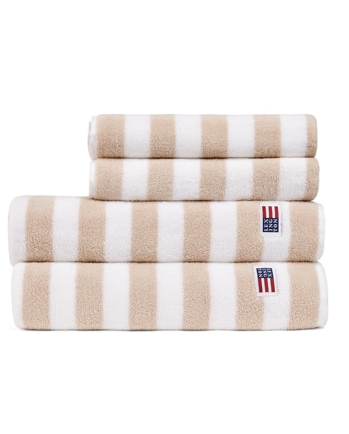 Vi presenterer Lexington sitt Block Striped-håndkle, laget av myk og absorberende 600 g ringspunnet bomullsfrotté for langvarig kvalitet. Med elegante garnfargede striper med kontrastfargede kanter og en jacquardtekstlogo som gir et raffinert preg. Dette Øko-Tex-sertifiserte håndkleet har også en vevd etikett med flagglogo og en praktisk kleshenger med pleieinstruksjoner, – perfekt for ethvert bad.