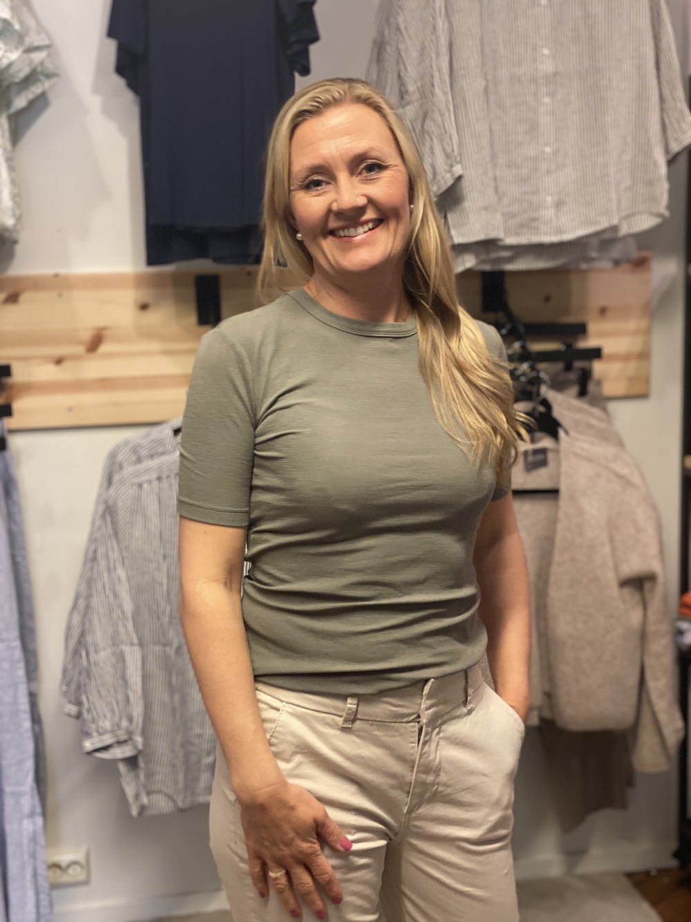 Kortermet topp fra Soft Rebels. Laget i et mykt modalstoff i ribbestruktur og laget med en o-hals. Den perfekte hverdagstoppen - par den med jeans og sneakers for en casual look eller under en blazer. Full lengde er 61 cm i størrelse S.