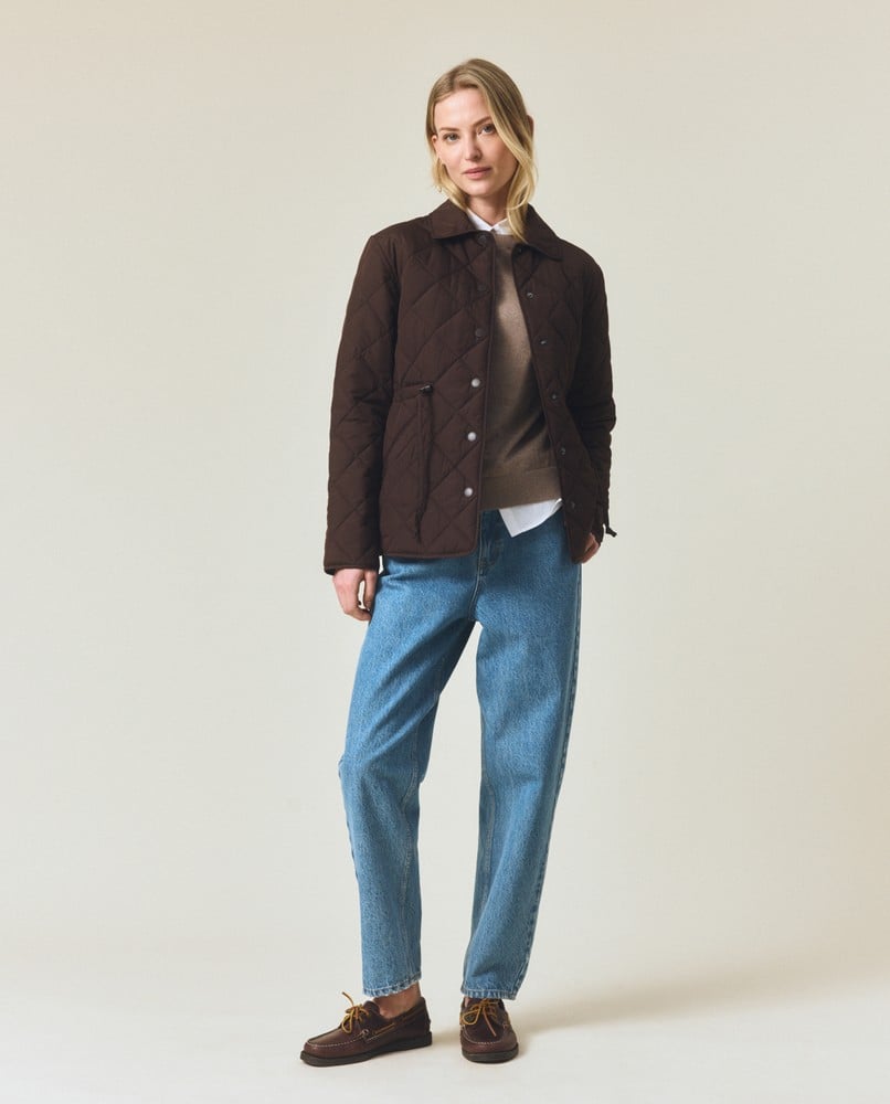 Lexington´s Classic Quilted Jacket kombinerer tidløs stil med praktisk komfort for høst- og vintersesongen. Den vatterte designen gir ikke bare visuell interesse, men sørger for utmerket varme uten unødvendig volum. De har laget dette allsidige plagget med nøye oppmerksomhet på detaljer, inkludert praktiske pålommer og trykknappslukking for enkel bruk. De justerbare snorene i livet lar deg tilpasse passformen og silhuetten etter eget ønske. Tilgjengelig i rik mørkebrun eller sofistikert grønn, har denne jakken innovative Bionic Eco WR-finish for vannbestandighet og holdbarhet. Perfekt for å legge over gensere på kjølige dager eller som et frittstående plagg i mildere vær, vil denne jakken med klassisk passform bli en essensiell del av din