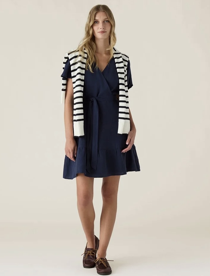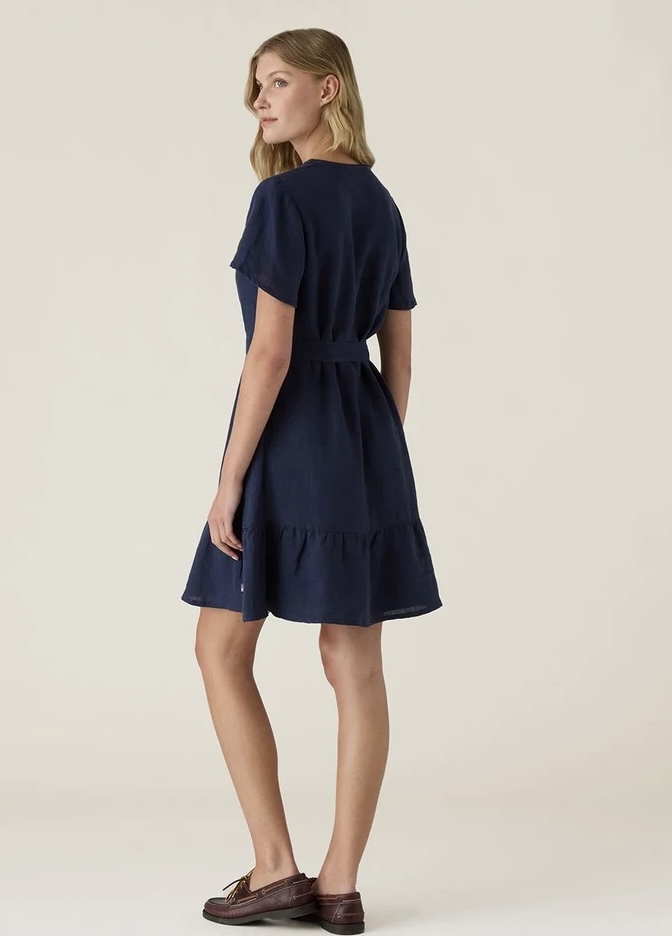 Den klassiske passformen og korte ermene gjør denne kjolen utrolig allsidig - perfekt til strandturer, hagefester eller uformelle byadventyr. Den tidløse mørkeblå fargen passer uanstrengt med sandaler til dagtid eller kan styles opp med høye hæler til kveldsanledninger.