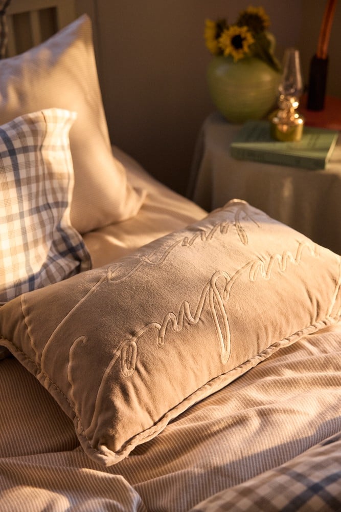 Gjør et tydelig designstatement i hjemmet ditt med vår Logo Organic Cotton Velvet Pillow. Med brodert Lexington-logotext over hele forsiden kombinerer denne luksuriøse puten stil med bærekraft. Håndlaget av den mykeste økologiske bomullsfløyelen og avsluttet med kraftige stikndetaljer i matchende farge, gir den både visuell appell og overlegen komfort.