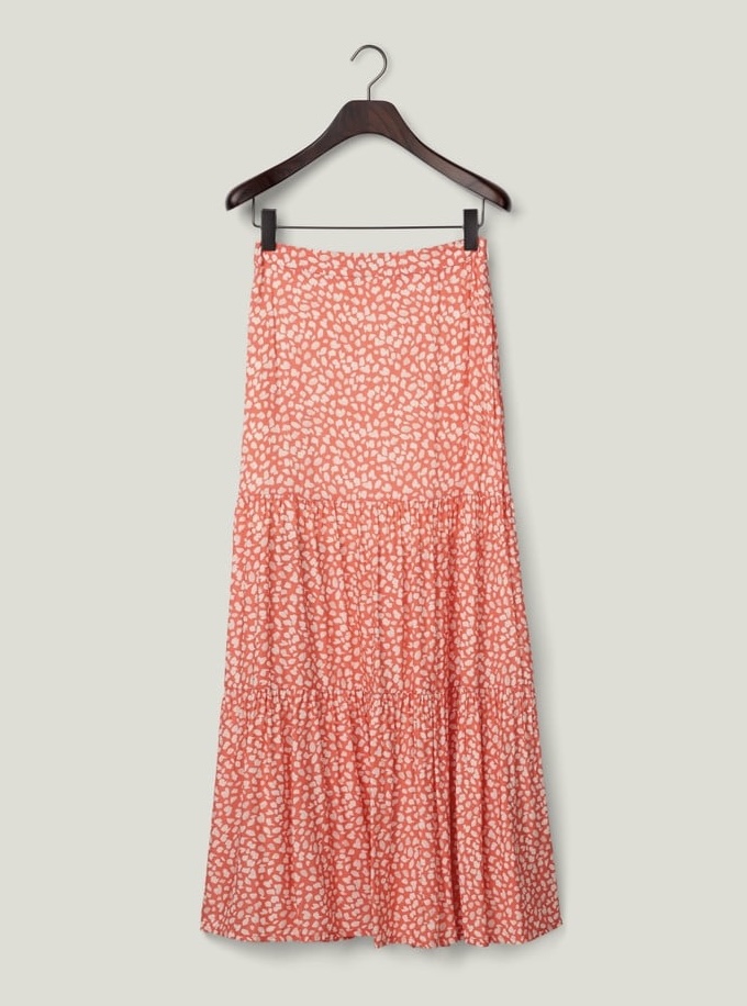 Dette maxiskjørtet fra Lexington med korallfarget prikkmønster er et fantastisk valg til enhver anledning. Den heldekkende designen har en utbuktende form som flyter grasiøst med hvert skritt. Skjørtet er fôret for ekstra komfort og et polert utseende, og har en usynlig glidelås i sidesømmen for en sømløs finish. Dette skjørtet er perfekt for å tilføre garderoben din et snev av eleganse, og kombinerer livlig stil med allsidig bruk.
