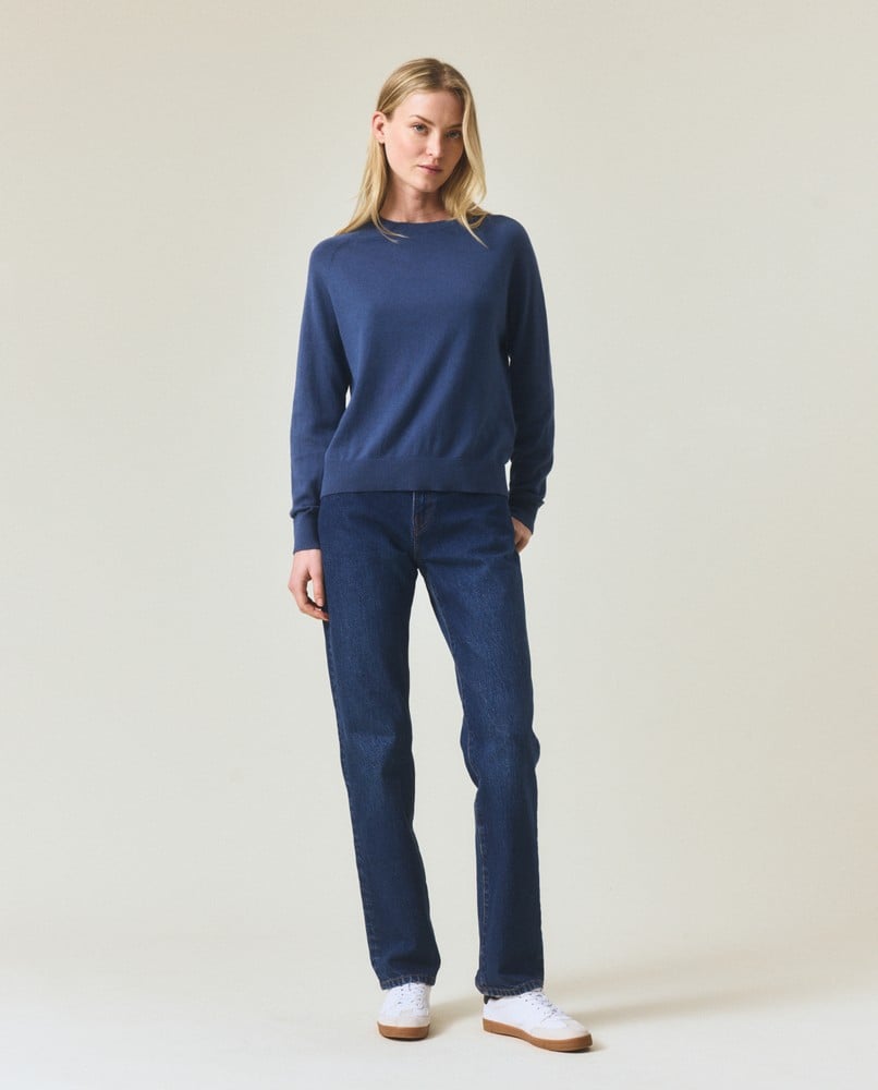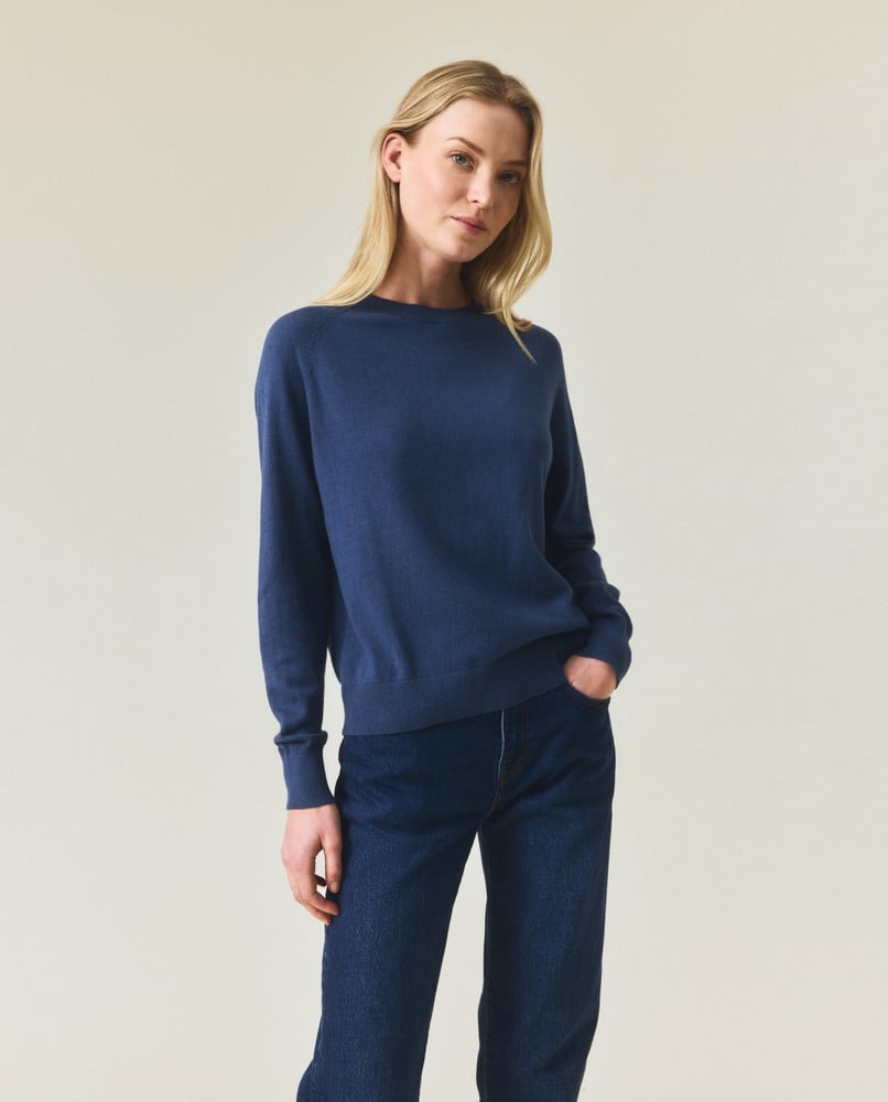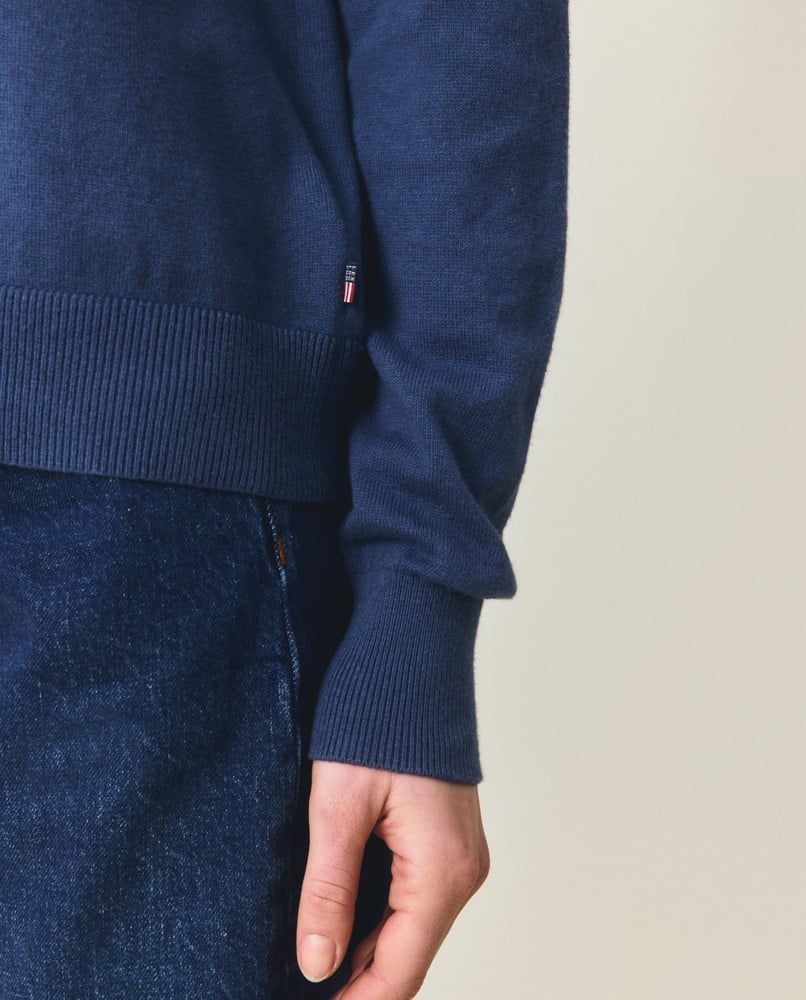 Opplev den perfekte kombinasjonen av hverdagskomfort og subtil luksus med Lexington sin kashmirblandingsgenser med raglanermer. Laget av en førsteklasses blanding av 95% bomull og 5% kashmir, gir denne fint strikkede genseren eksepsjonell mykhet mot huden samtidig som den gir akkurat riktig mengde varme for overgangssesonger. Den klassiske raglanermdesignen gir økt bevegelsesfrihet, noe som gjør den ideell for både hverdagsbruk og avslappede arbeidsdager.