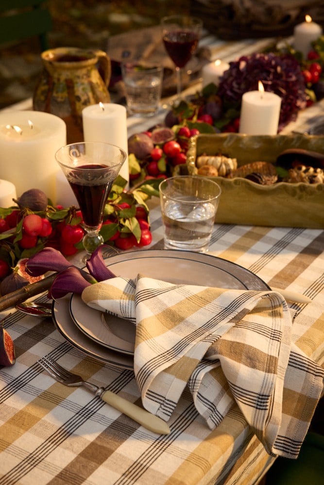 • Serviett i lin/bomullsblanding med eksklusivt høstrutete mønster