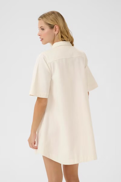 Denne skjortekjolen i en myk bomullsblanding har korte ermer, store frontlommer og en avslappet passform. Den gjennomkneppede stilen gjør den enkel å style – perfekt på varme dager med sandaler, eller med jeans og sneakers når været skifter.