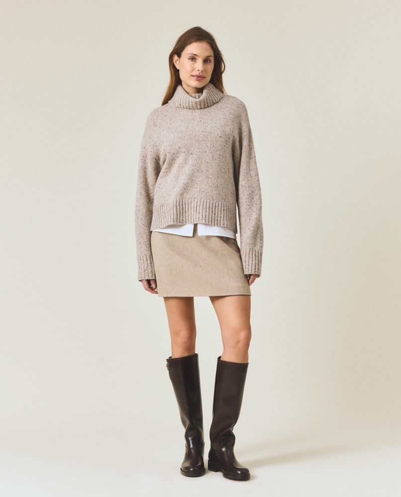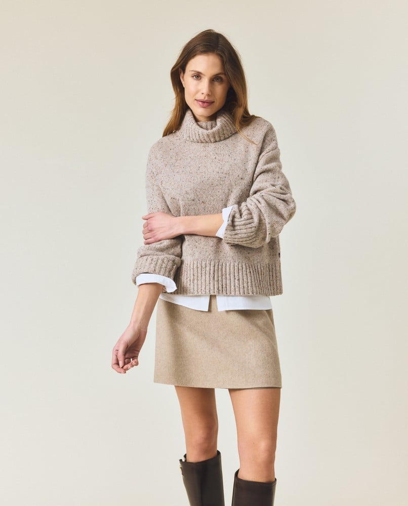 Denne luksuriøse rullekragegenseren fra Lexington i ullblanding gir eksepsjonell varme og komfort i vintersesongen. Den er laget av en førsteklasses ullblanding som gir både isolasjon og mykhet, og har en stilig foldet rullekrage som både er sofistikert og funksjonell. Den tette strikkede strukturen sikrer holdbarhet og gir utmerket beskyttelse mot kulden.